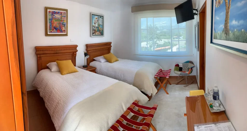 Ofrecemos 18 habitaciones cómodas y totalmente equipadas, decoradas con obras de arte ecuatorianas. Todas cuentan con aire acondicionado, TV, minibar, caja fuerte y baño privado